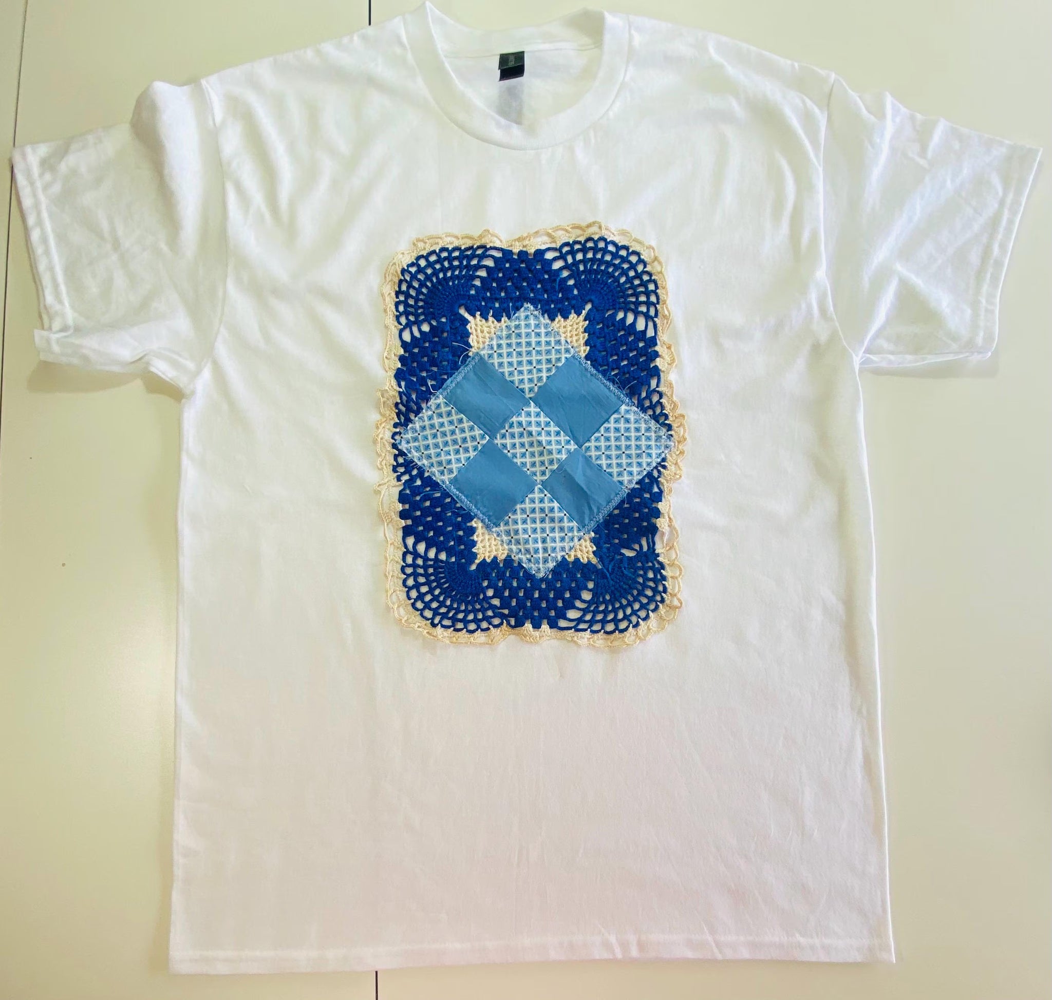 Large White Vintage Quilt Block and Doily tee