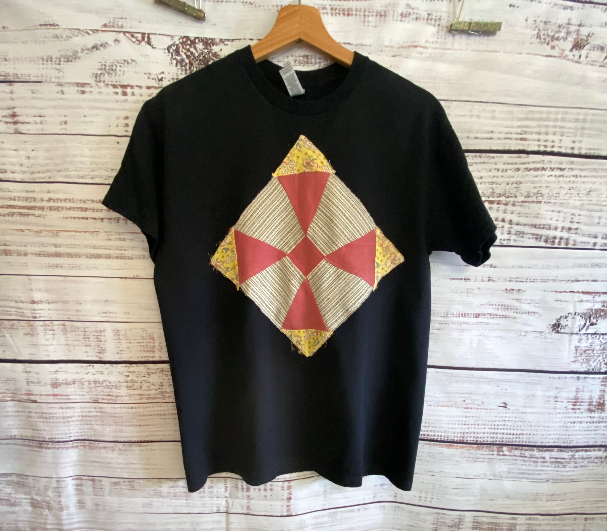Medium Black Vintage Quilt Block tee