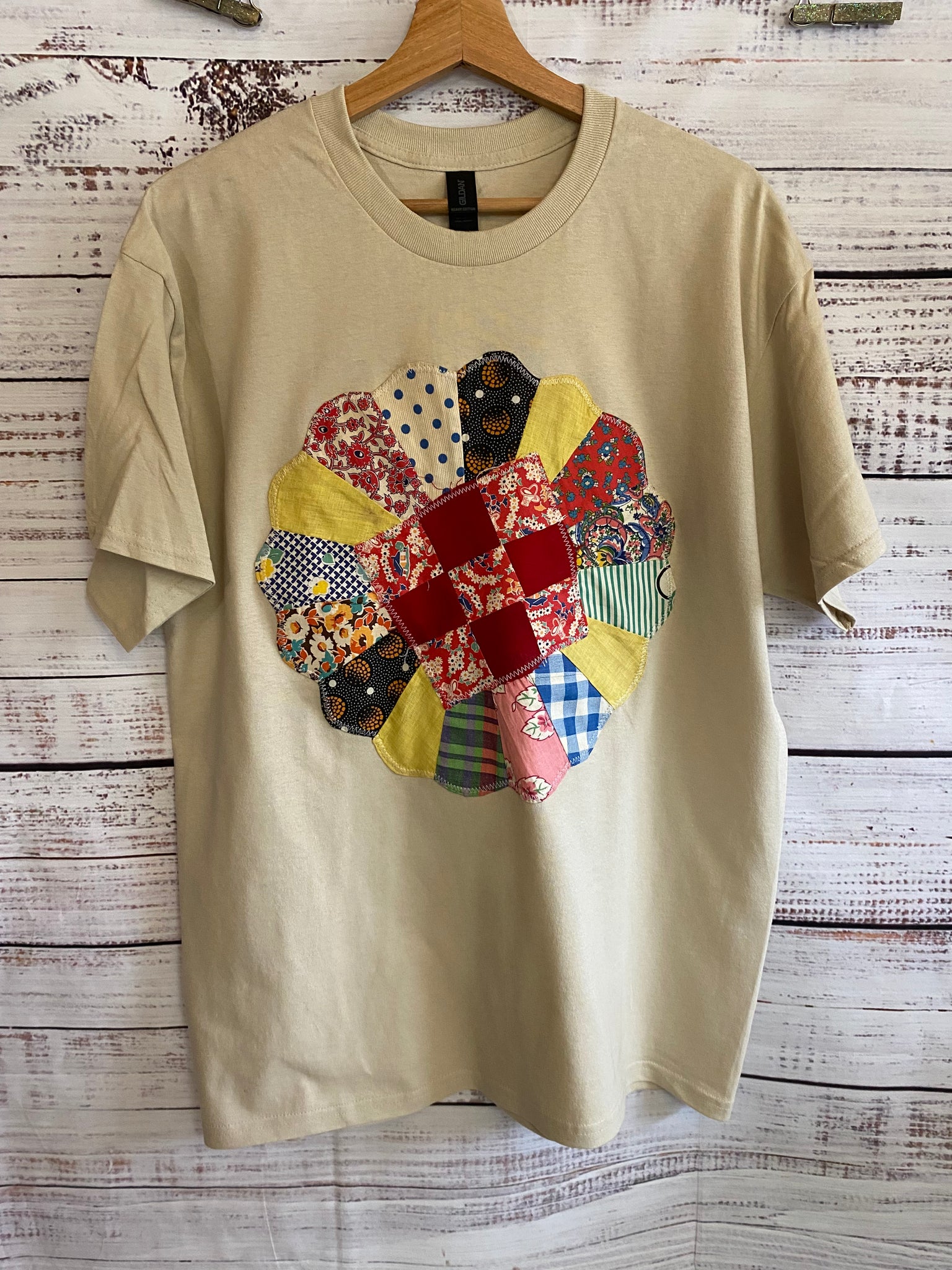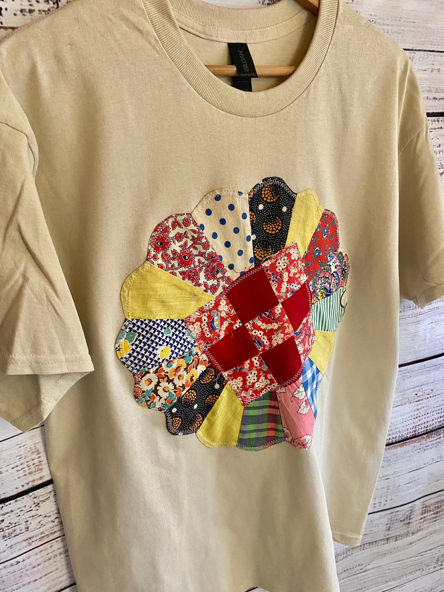 Large Beige Vintage Quilt Block tee